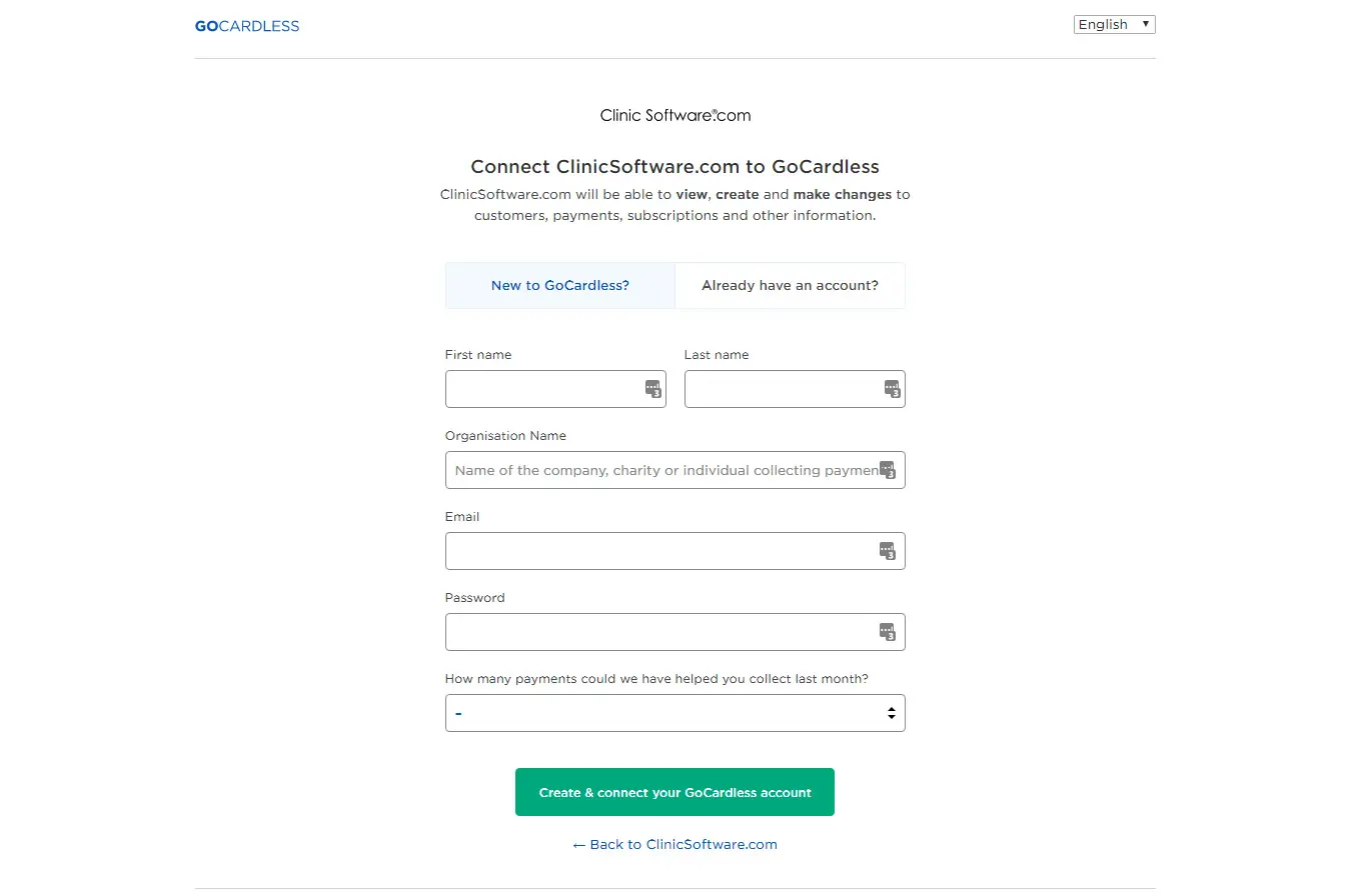 Get started in minutes by connecting your GoCardless and ClinicSoftware accounts to the GoCardless for ClinicSoftware App.